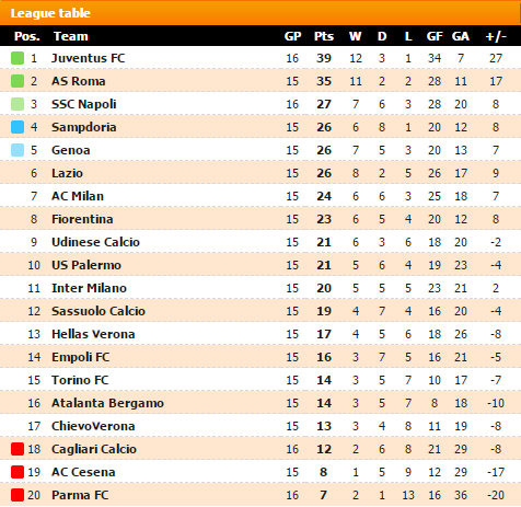 Agen judi online - Serie A memasuki pekan ke 16, Juventus, Napoli, Parma dan Cagliari sudah menjalani laga pada pertengahan pekan kemarin. Juventus berhasil membekuk tuan rumah Cagliari dengan skor 1-3, sementara Napoli berhasil mengalahkan Parma 2-0.