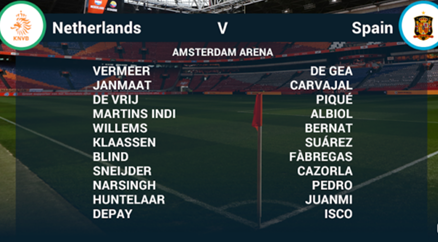Cashbet media - Belanda langsung tancap gas di awal pertandingan dengan memeragakan umpan-umpan pendek yang cukup memuaskan fans di tribun hingga memaksa Spanyol lebih banyak bermain di area sendiri.